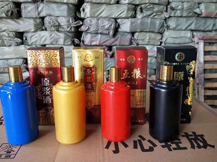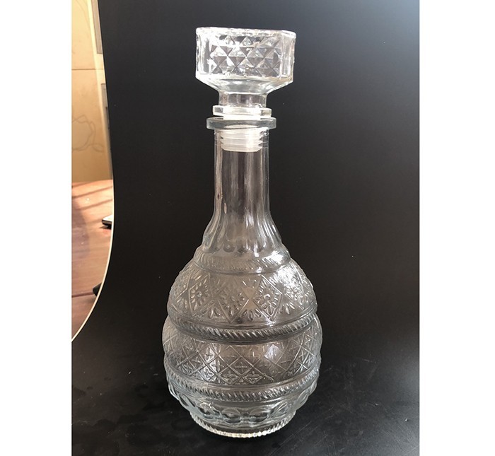蒙砂酒瓶是在制品玻璃上,粘附一定大小面積的玻璃色釉粉,玻璃瓶廠經(jīng)過580~600℃的高溫烘烤,使玻璃色釉涂層凝結在玻璃外表,并顯現(xiàn)出具有與玻璃主體不同顏色的一種裝飾辦法。粘附玻璃色釉粉,可用排筆涂刷,亦可用膠輥滾涂。經(jīng)過絲印加工,能夠得到蒙砂面的樓空圖案。 其辦法是:在玻璃制品外表上,絲印一層由阻熔劑構成的圖案紋樣。